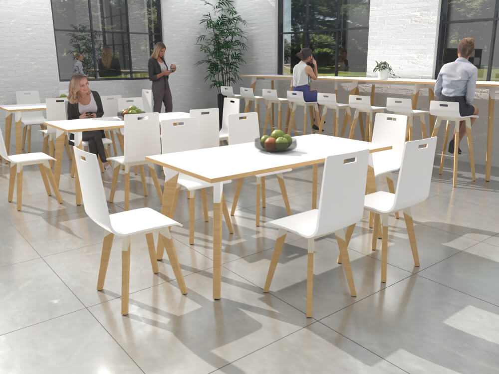 - Material: Laminate Top, Wood Veneer Legs