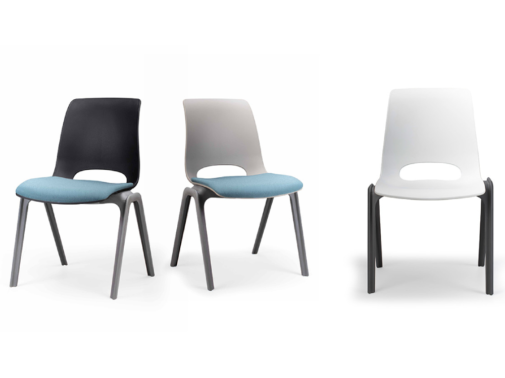 - This chair collection is designed for workspaces, cafés, restaurants, and breakout areas. With a clean, modern look and flexible back support, the stacking chairs offer a perfect balance of comfort and style. Available in white, grey, graphite, or taupe seat shells with a dark grey four-legged frame, they stack neatly to protect upholstery and can be easily linked side by side—ideal for conference, meeting, or visitor seating.