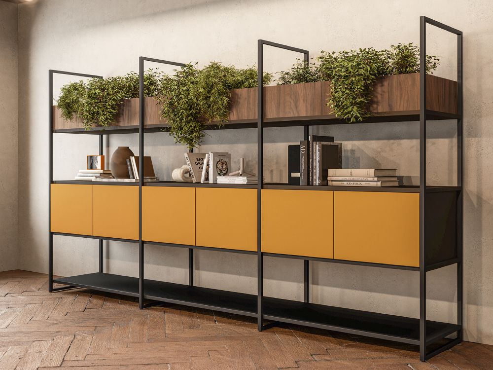 - Shelves Structure : Made with 25mm thick particle board panels in 2 versions: E1 class scratch-resistant and anti-reflective melamine on two sides, with 1mm thick ABS perimeter edges; · micro- tructured matt lacquered with polyurethane paints. Designed with a special slot for the concealed shelf bracket required to attach them to the vertical uprights. Available in 2 finishes of the melamine and in all finishes of the lacquered collection.