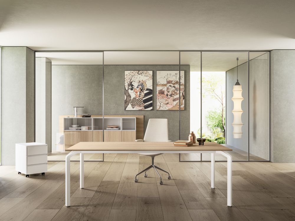 Vinny 4 – Executive Desk with Wood Veneer Top and Optional Return & Credenza Unit