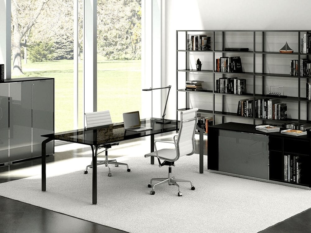 Vinny – Executive Desk with Clear Glass Top and Optional Credenza Unit