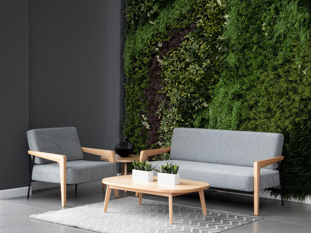 - A unique seating range designed with nature and minimalism in mind. Its combination of raw materials delivers an armchair and a two-seater sofa with luxurious proportions.