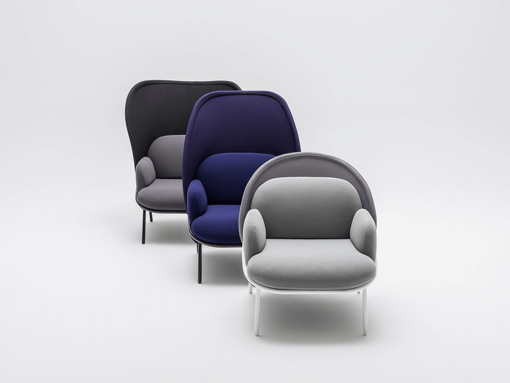 - Seat, backrest, armrests: Moulded foam, density of 55 kg/m3, upholstered.