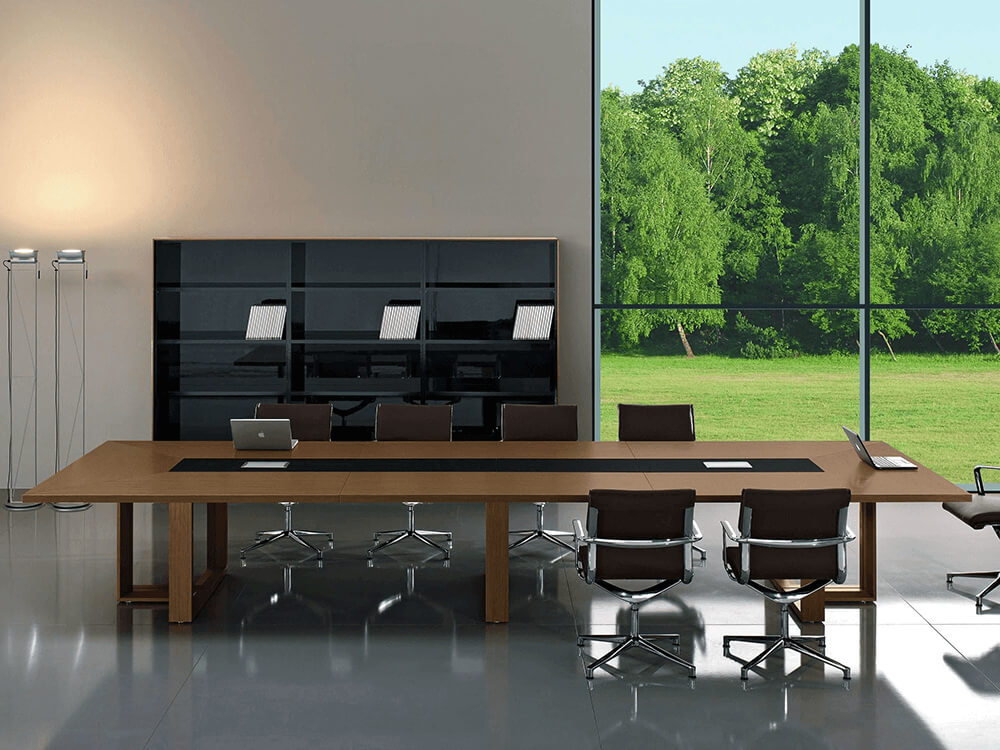 Yabel - Wood Veneer Rectangular Meeting Table with Leather Inset