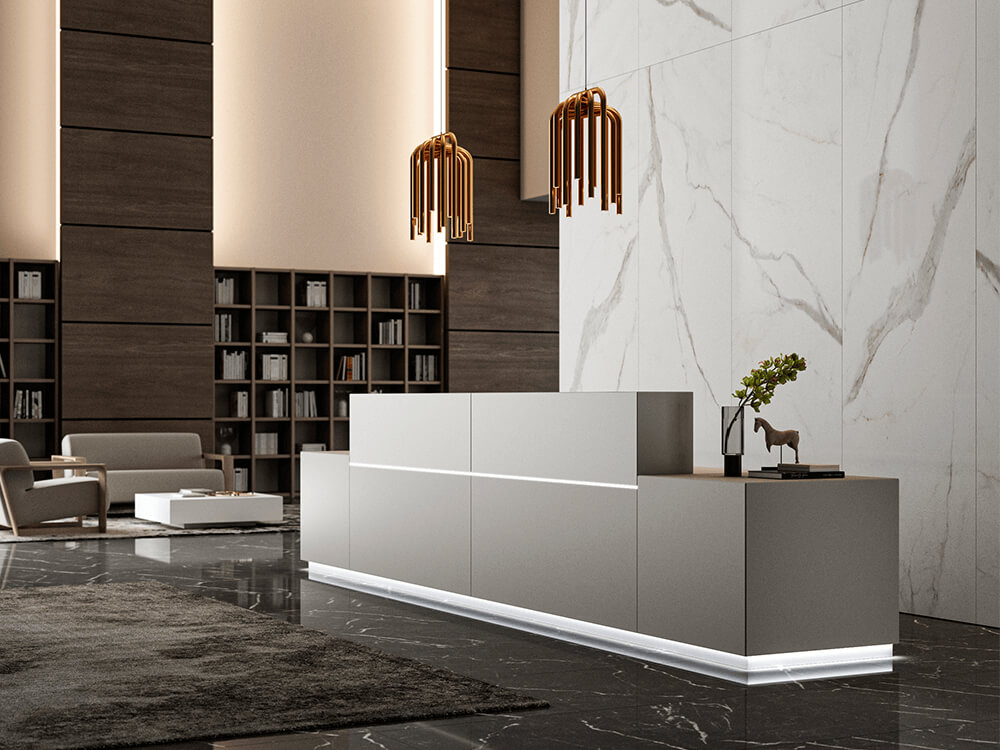 - Lacquered Back Panels: Straight structural back panels made of 30mm lacquered melamine faced chipboard (MFC) finished with 2mm impact resistant ABS edges in a matching matt lacquer finish.